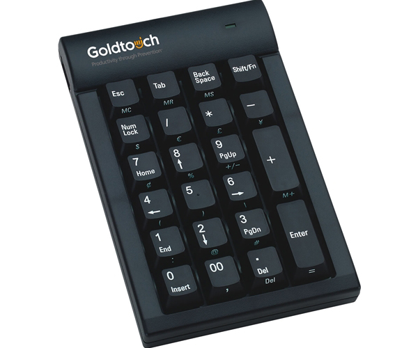 The Goldtouch Numeric Keypad, with its USB hub, complements the Goldtouch keyboard and allows the convenience of remaining detached from the keyboard itself for optimal mouse and keypad placement. With its crisp and tactile feel, and the right amount of audible feedback, hardcore number crunchers will enjoy the ease of having a numeric keypad at their workstation or attached to their notebooks anywhere they work.